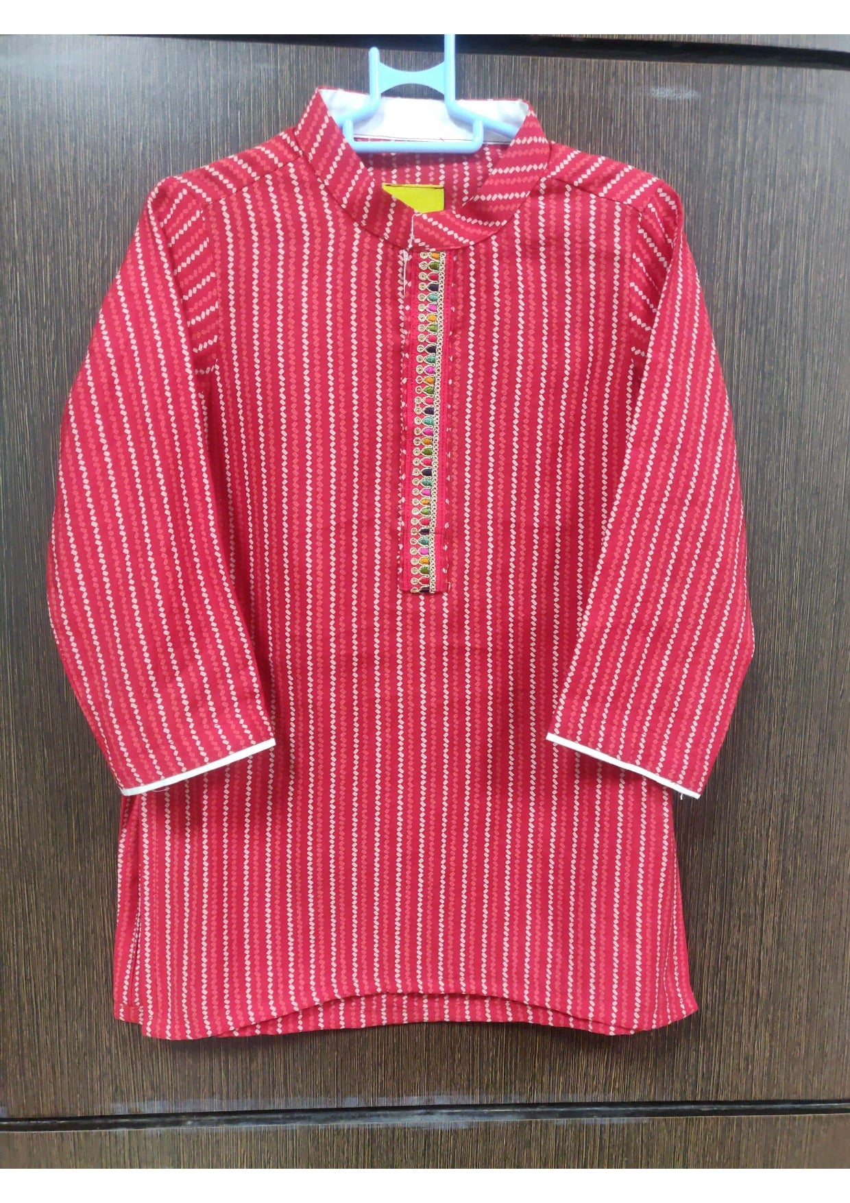 Red stripes kurta with red lace and cream pant