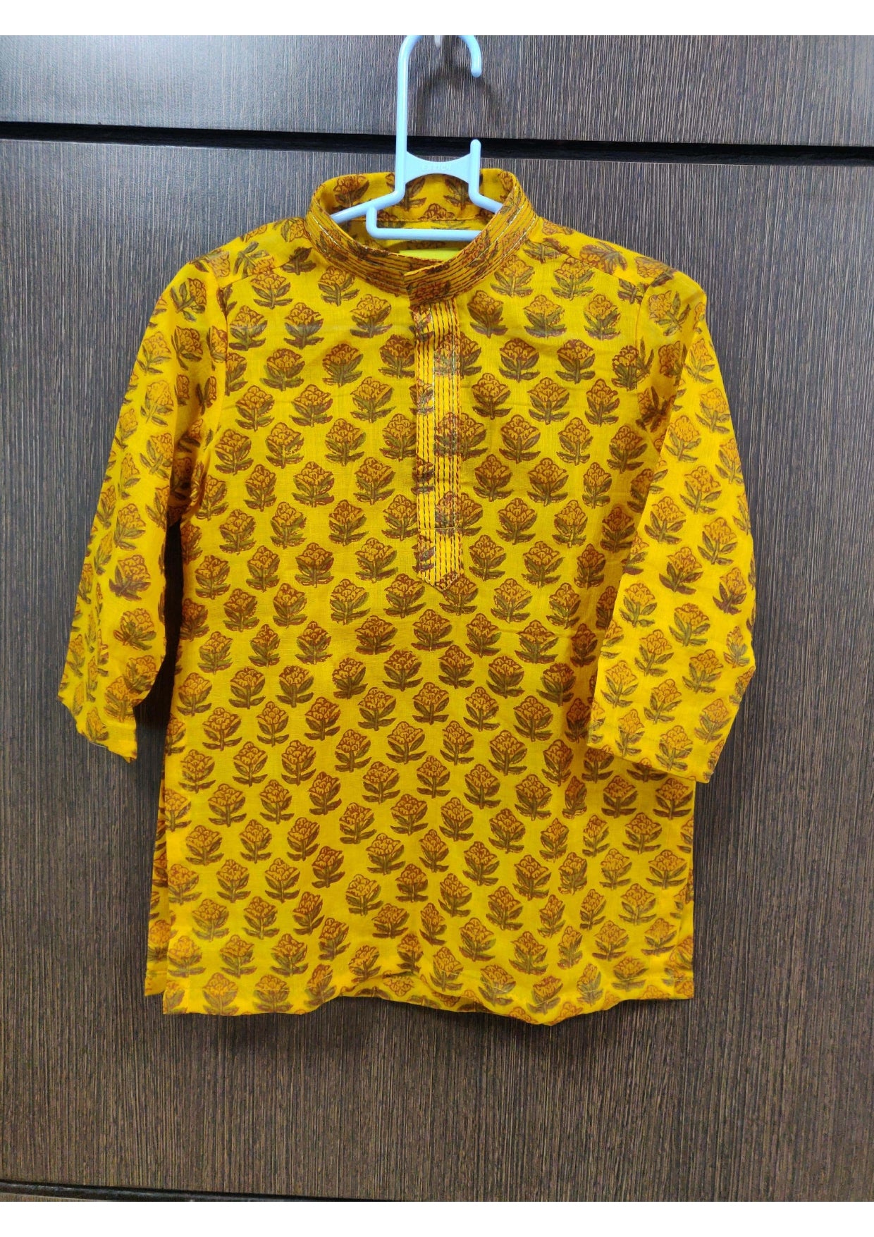 Yellow printed kurta with cream pant